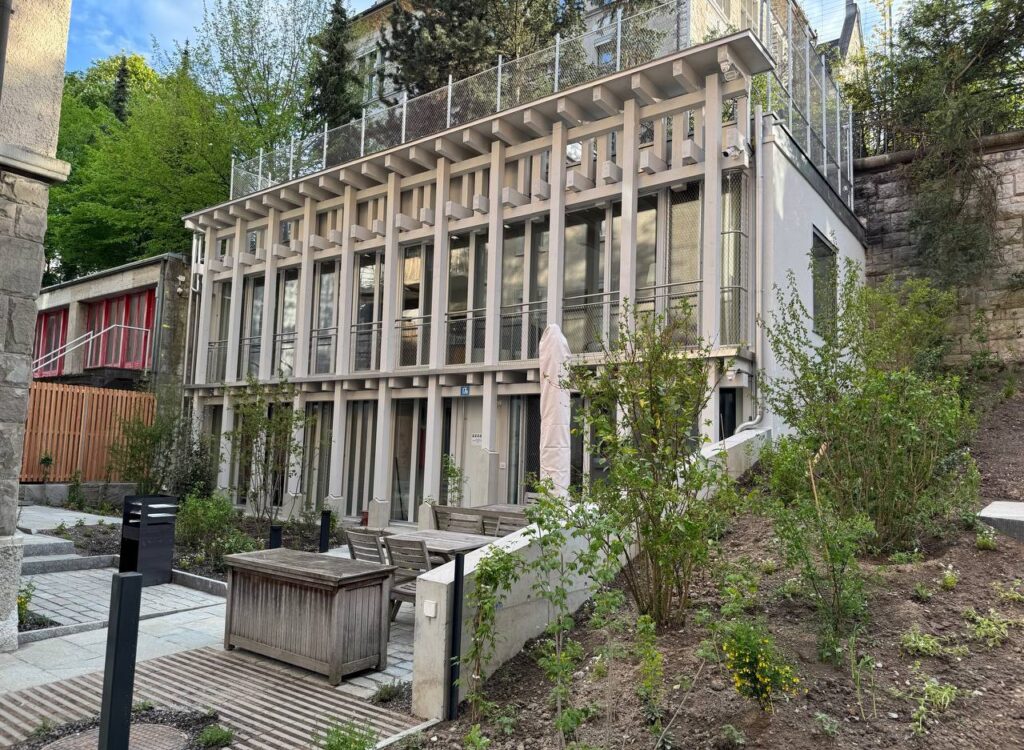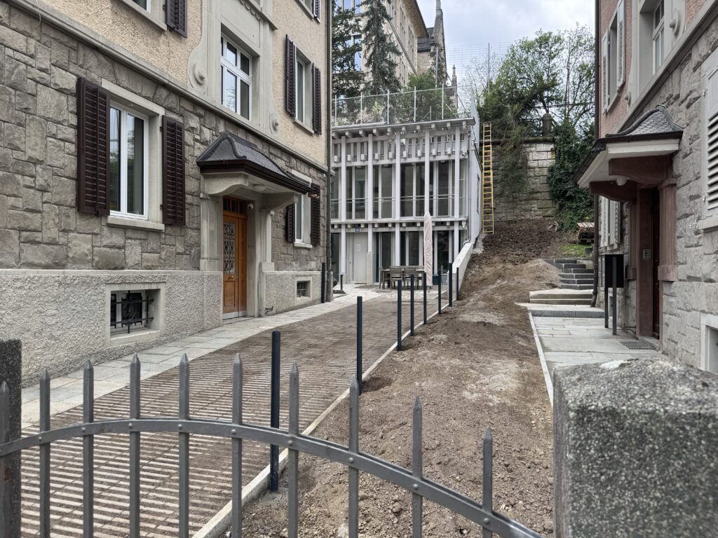 Die Bepflanzung der Umgebung wurde diese Woche fertiggestellt. Endlich sieht man das neue Haus, wie wir uns es jahrelang vorgestellt haben – sogar noch besser – und das Wetter am Sechseläuten-Wochenende machte mit. Es fehlen nur noch die Tore, der Zaun zwischen Schrennengasse 17 und Schrennengasse 19, die Kletterseile und die Igelleiter zur Schrennengasse 15!
